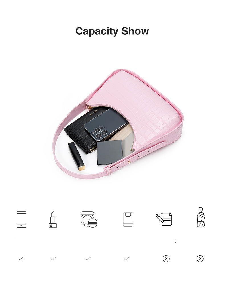 Manufacturer Custom New Fashion Half Moon Crocodile Pattern Genuine Leather Ladies Underarm Shoulder Hand Bag Handbags For Women