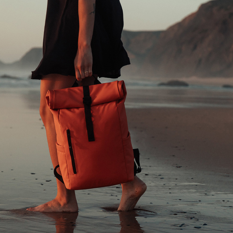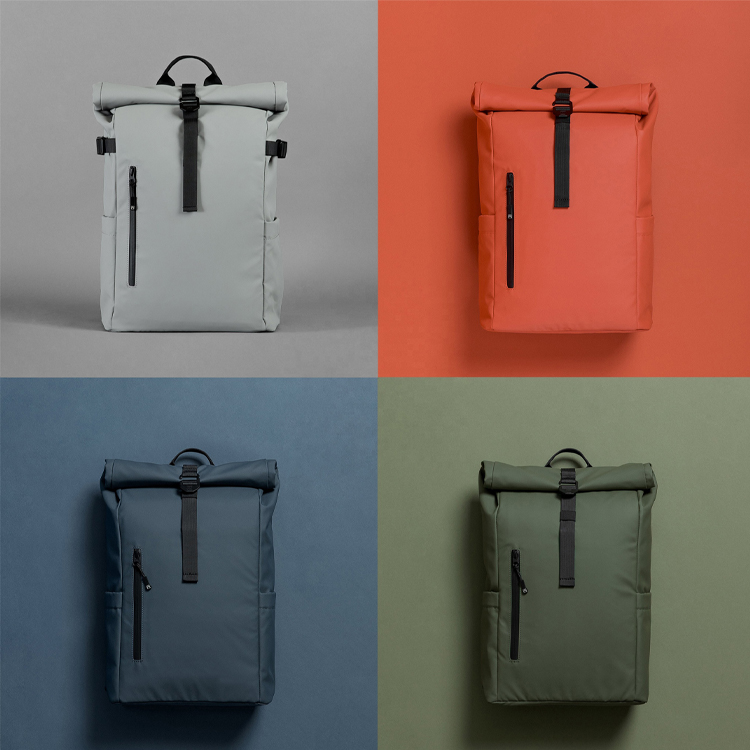 Manufacturer Custom Sustainable Eco Friendly Recycled Rpet Fabric Waterproof Men Women Travel Laptop Roll Top Rolltop Backpack