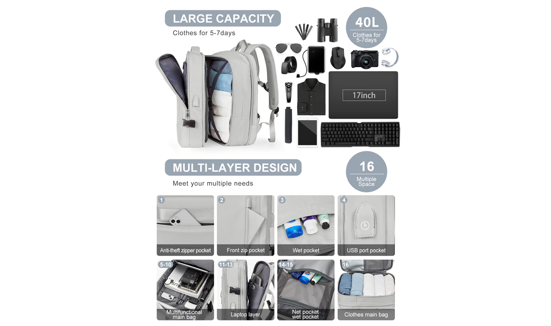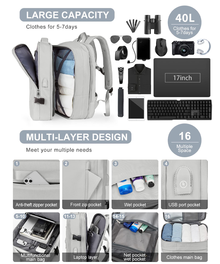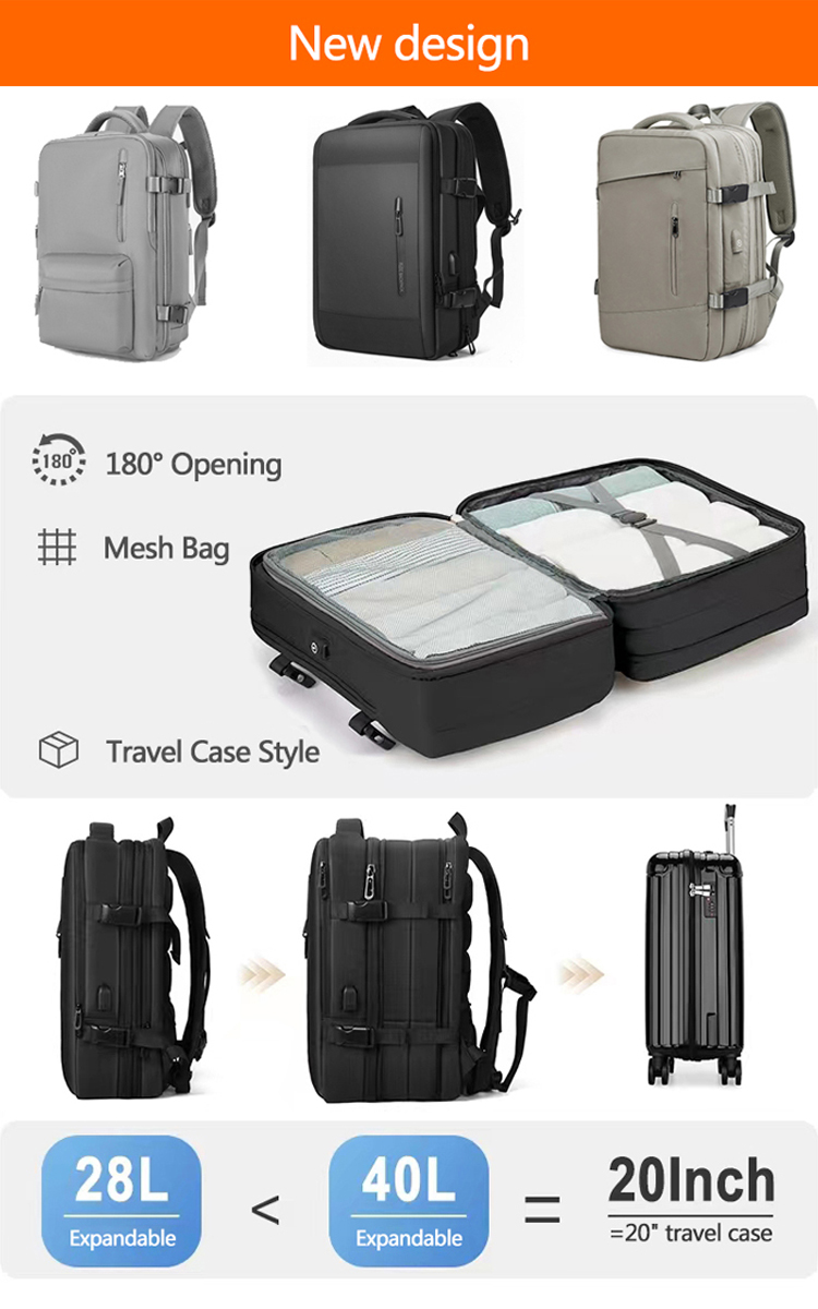 Manufacturer Custom Logo New Large Expandable Waterproof Anti Theft Usb Charging Business Laptop Travel Backpack For Men Women