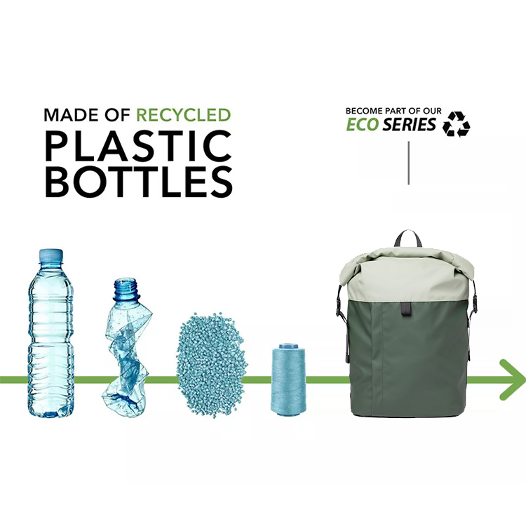 Manufacturer Custom Sustainable Eco Friendly 100% Recycled Rpet Fabric Waterproof Outdoor Casual Sports Travel Bagpack Backpack