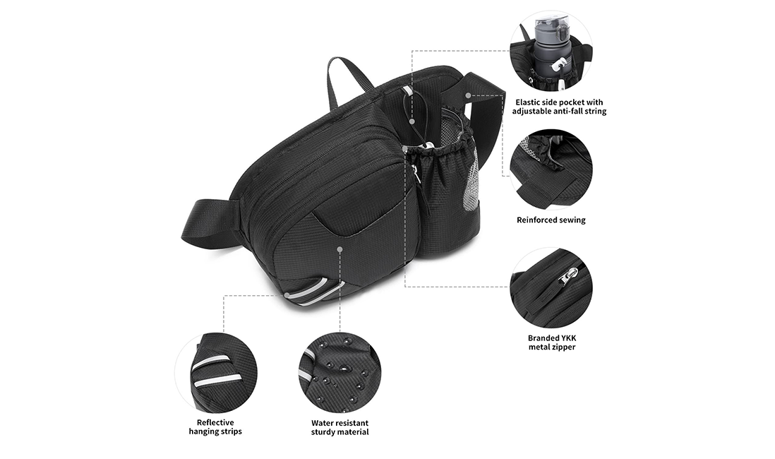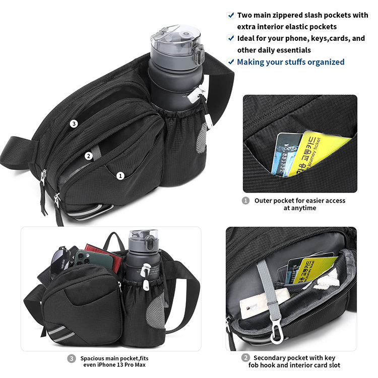 Manufacturer Custom Outdoor Hiking Travel Waterproof Nylon Hydration Sport Running Fanny Pack Waist Bag With Water Bottle Holder