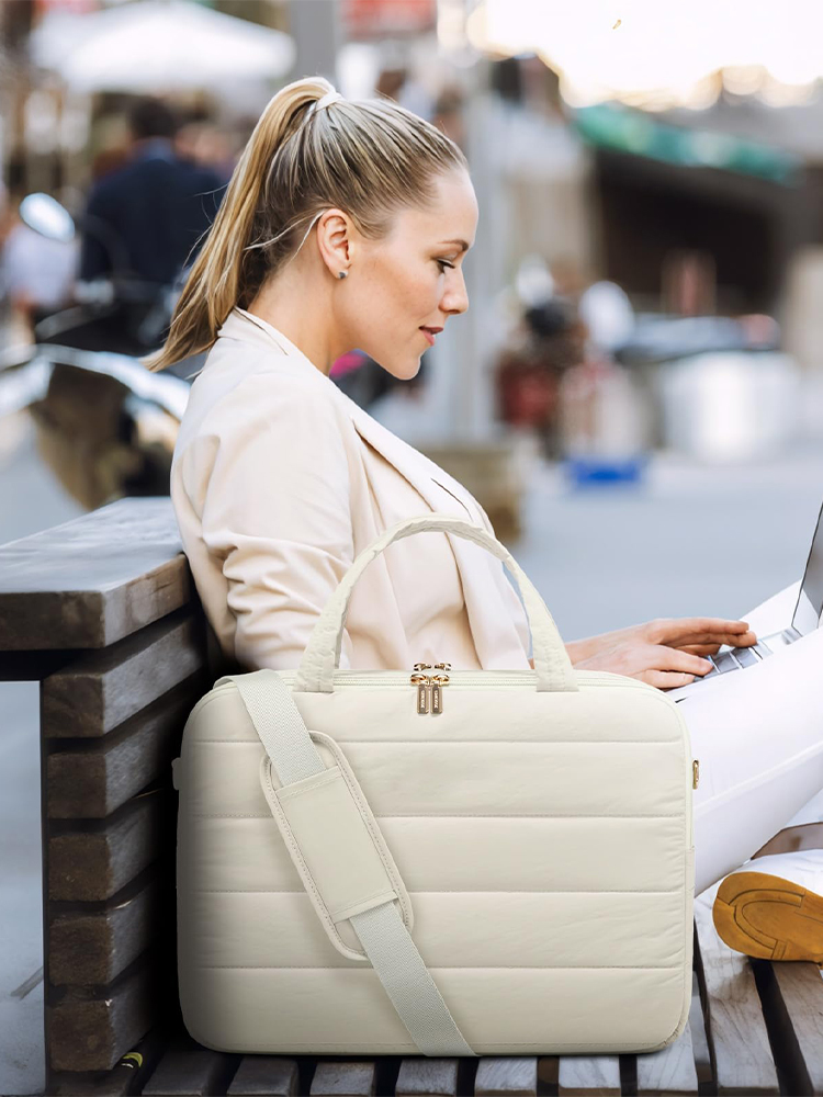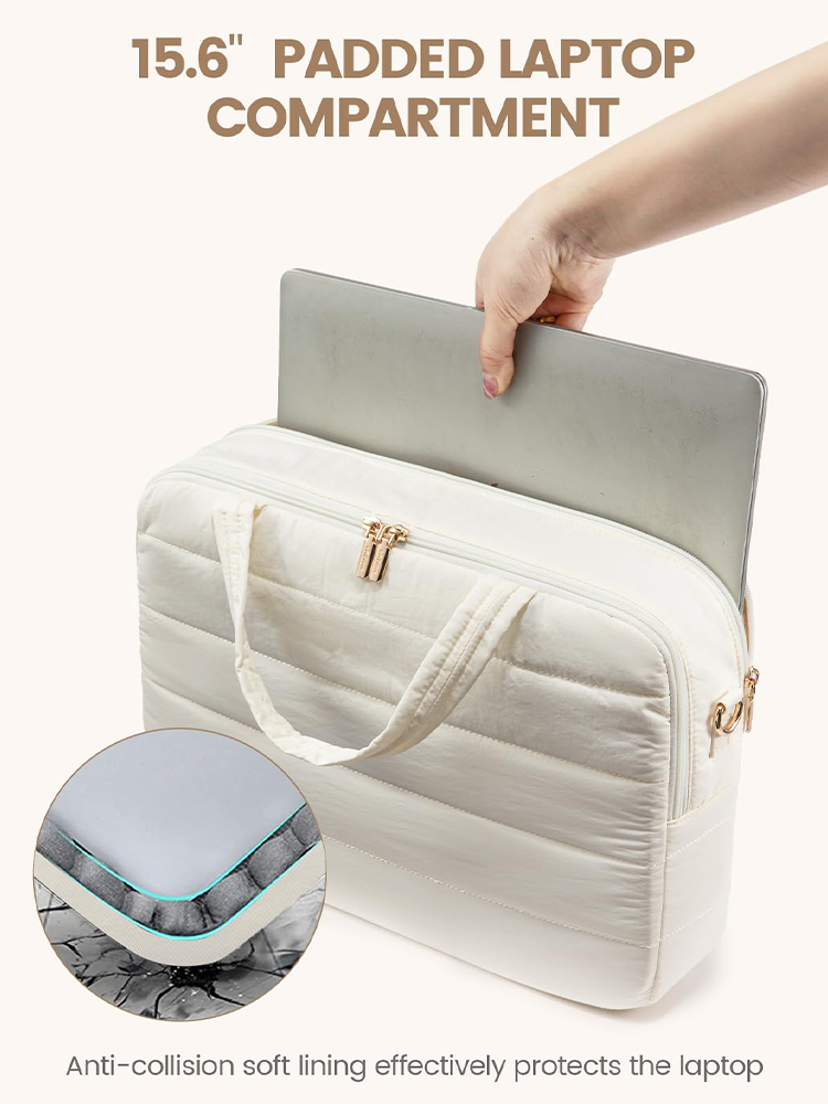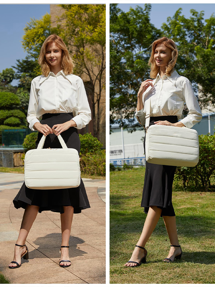 Manufacturer Custom With Logo 15.6 Inch Large Puffer Puffy Quilted Office Travel Computer Briefcase Laptop Tote Bag For Women