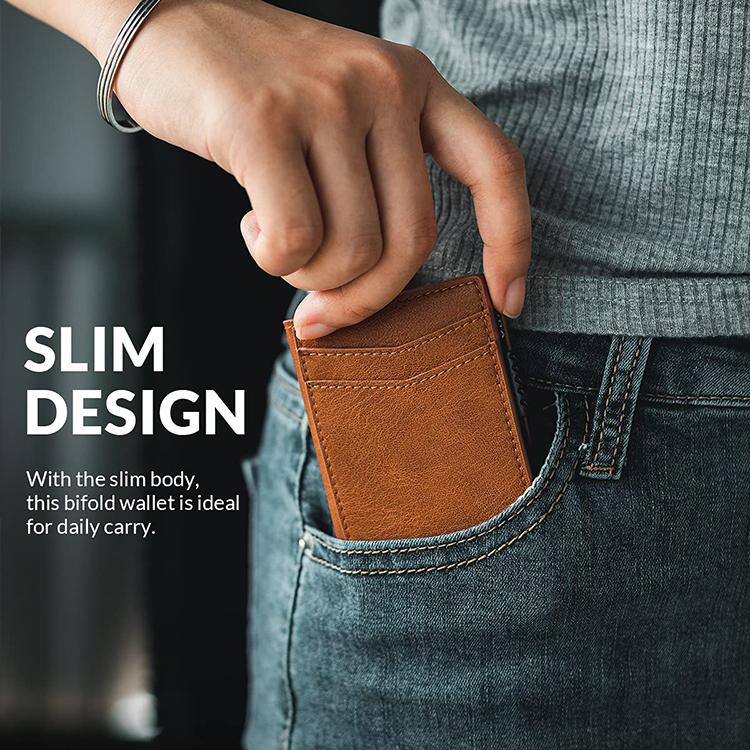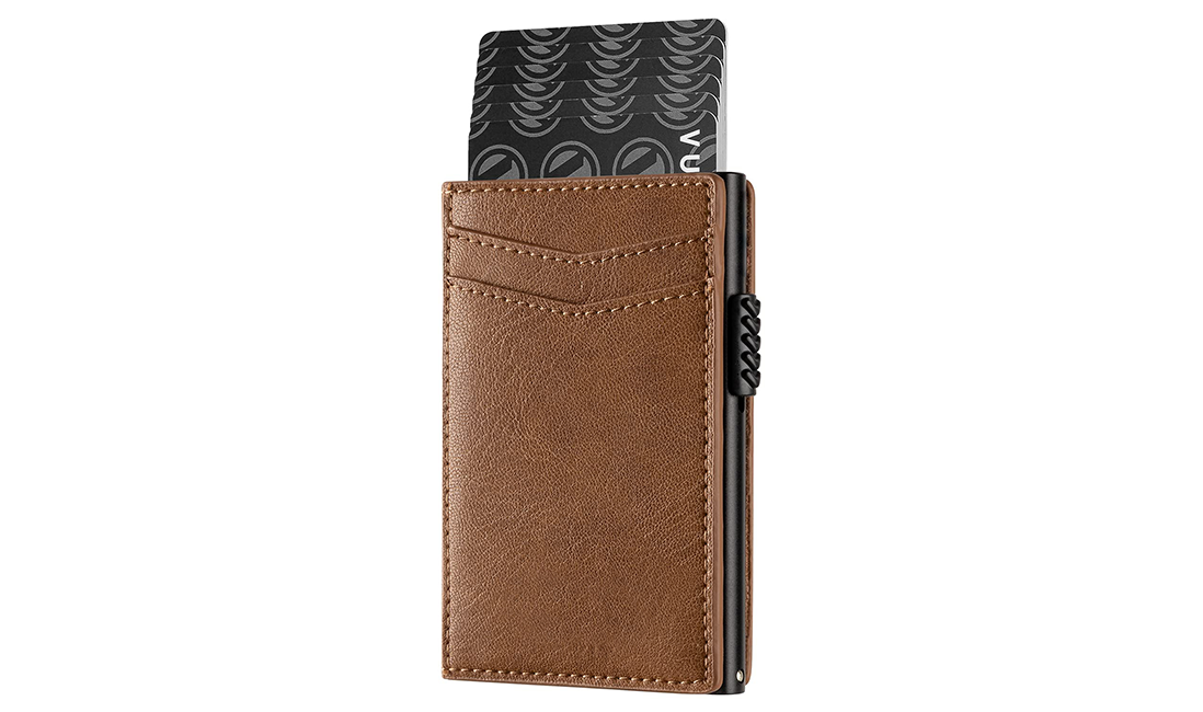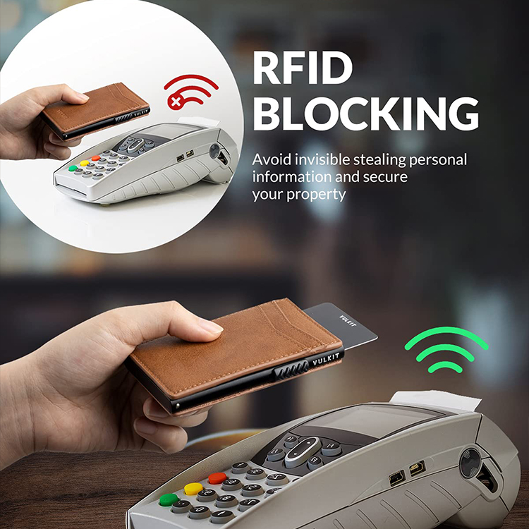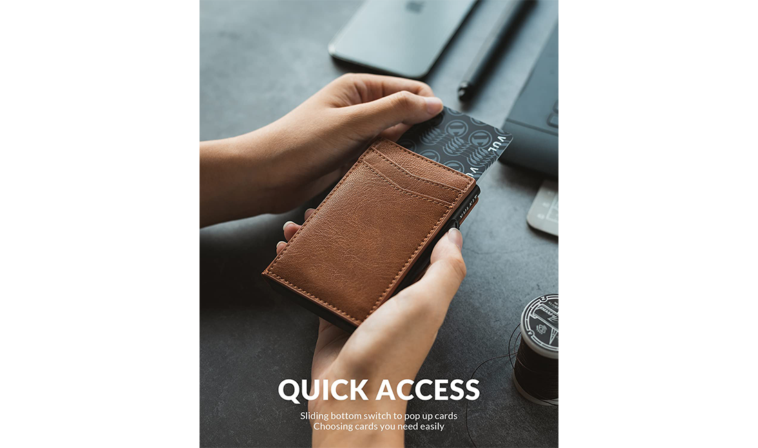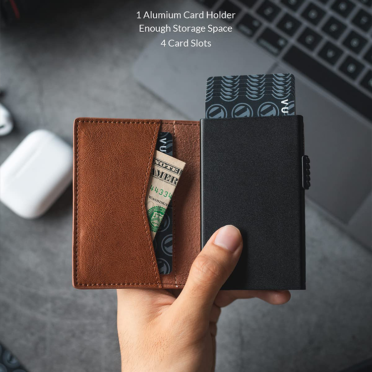 Manufacturer Custom Logo Slide Automatic Pop Up Business Card Magsafe Rfid Blocking Metal Leather Credit Card Holder Men Wallet