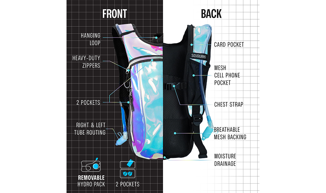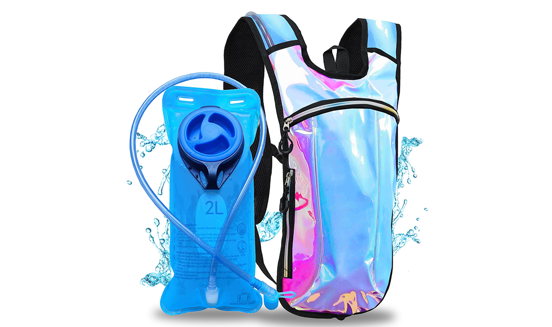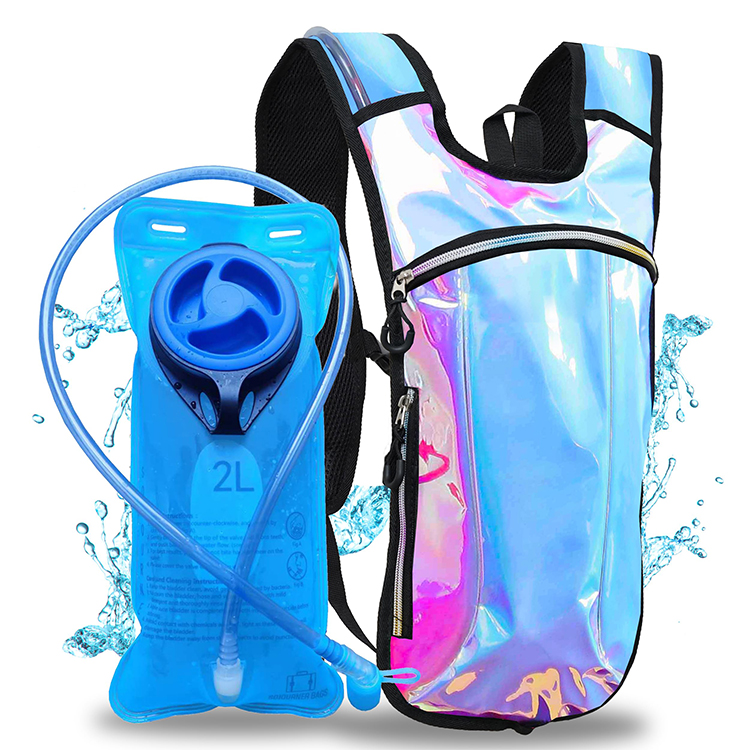 Manufacturer Custom Logo Holographic Hydration Pack Water Backpack With 2L Water Bladder For Hiking Running Biking Festival Gear