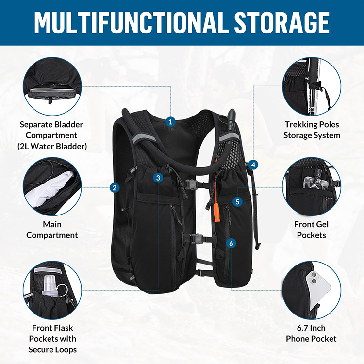 Manufacturer Custom Outdoor Sports Hiking Trail Marathon Lightweight Hydration Pack Running Vest Backpack With 2L Water Bladder