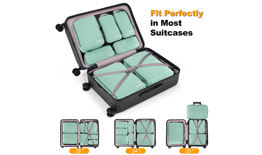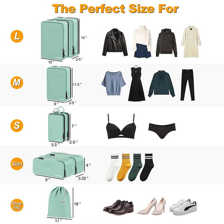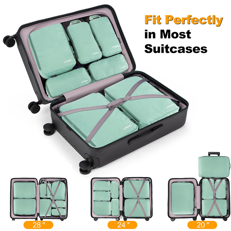 Manufacturer Custom Logo Ultralight Suitcase Storage Luggage Packing Organizer Bag Set Travel Compression Packing Cubes 8 Set