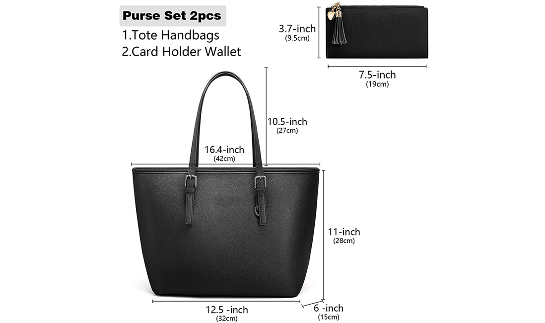 Size:Handbags (34 x 15 x 29 cm); purse (19 x 9.5 x 1 cm).