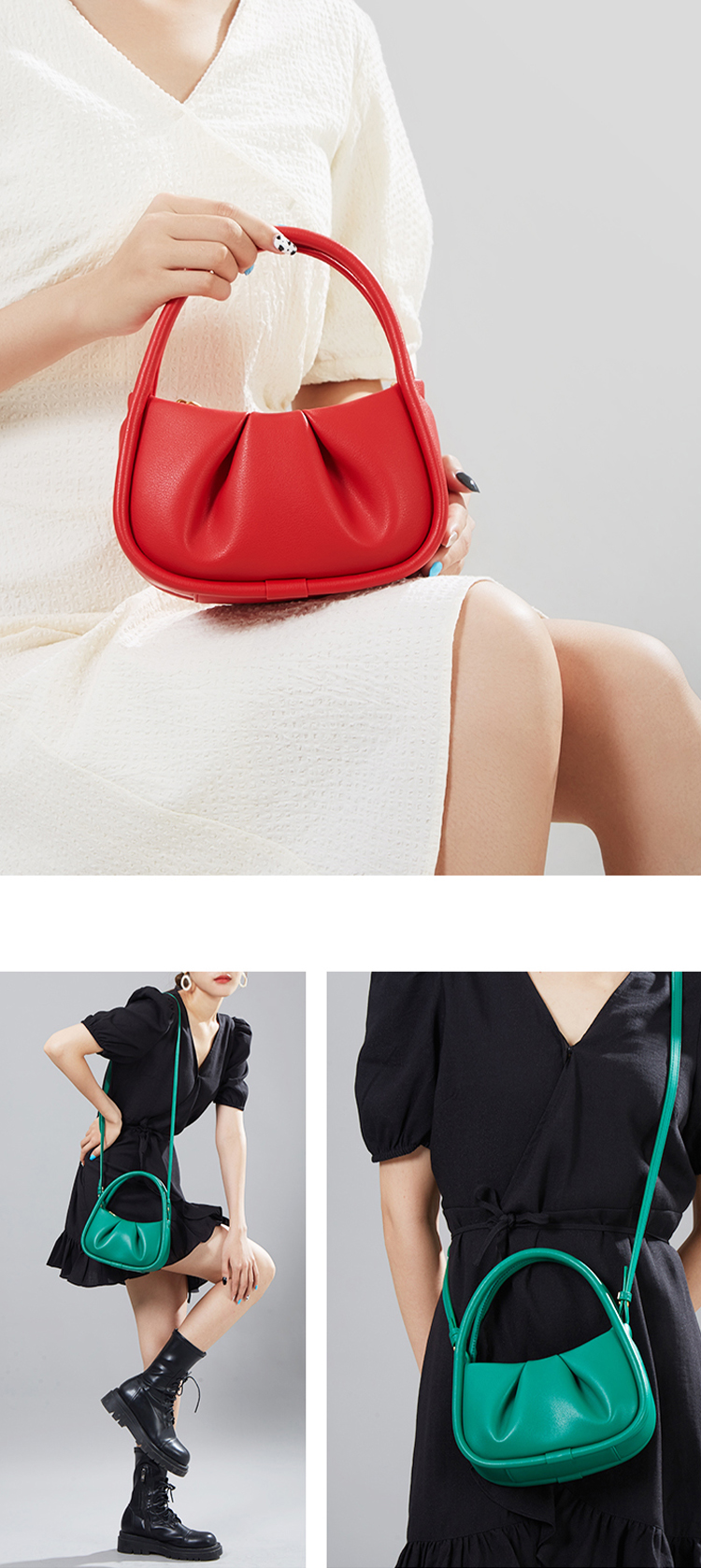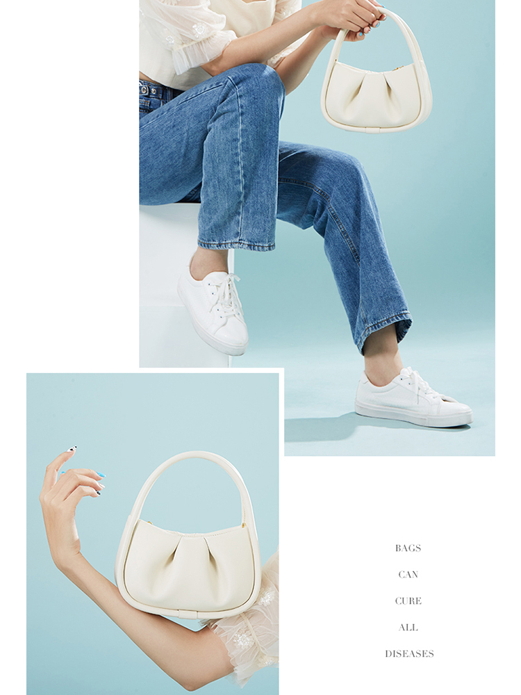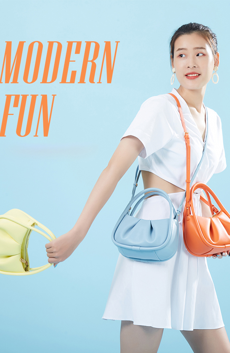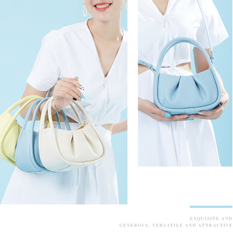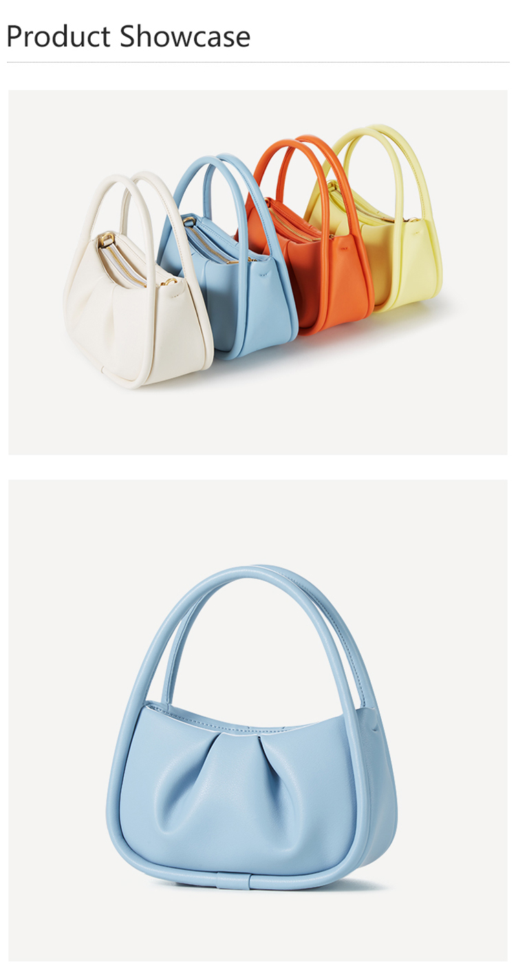 Manufacturer Custom Logo 2025 New Fashion Cute Ruched Colorful Macaroon Ladies Shoulder Genuine Leather Handbags For Women Girls