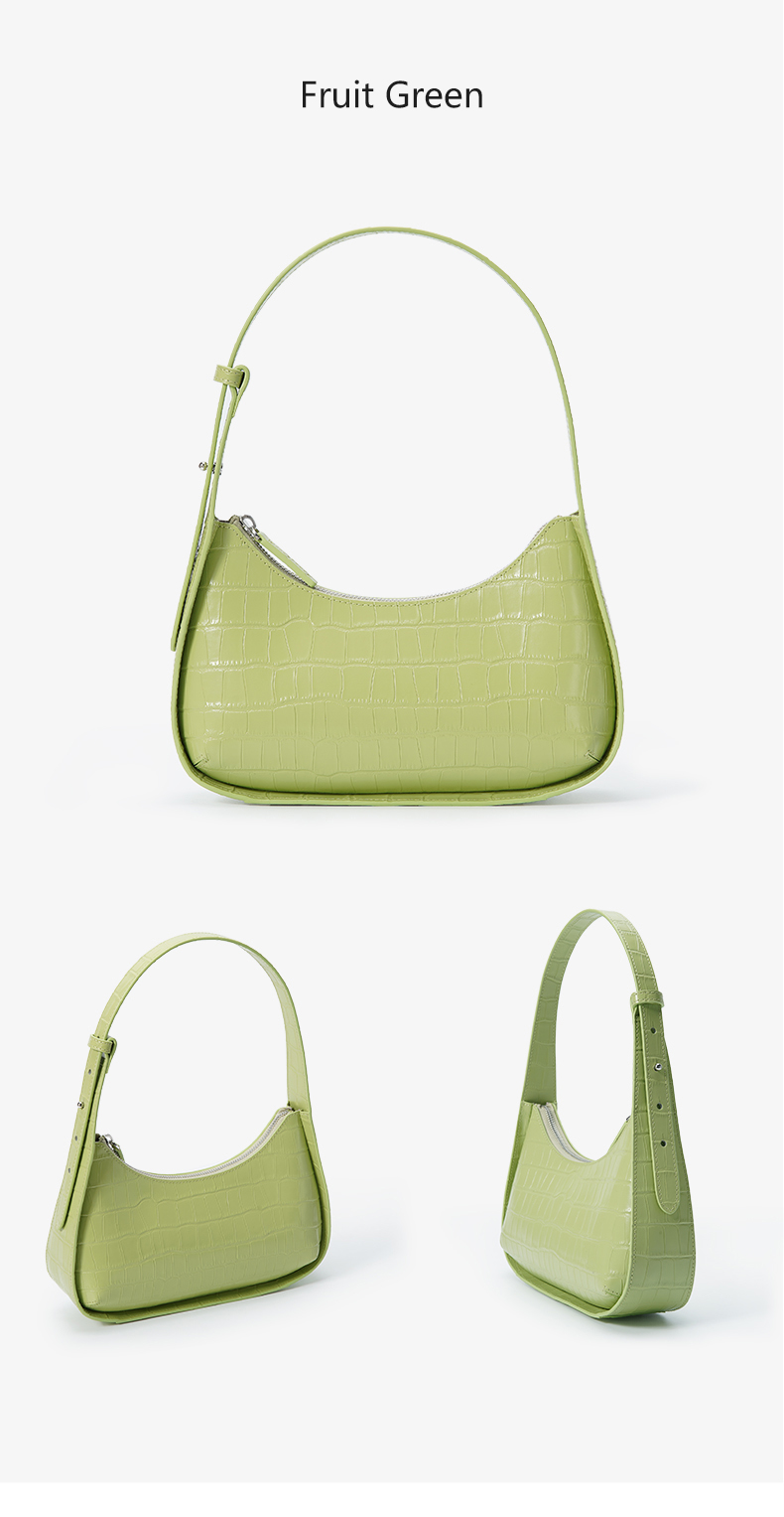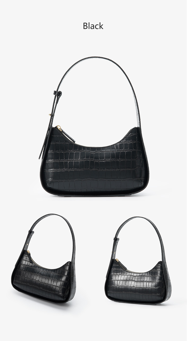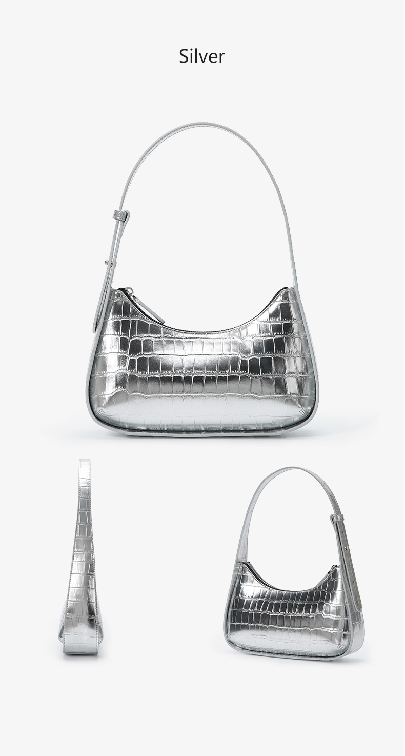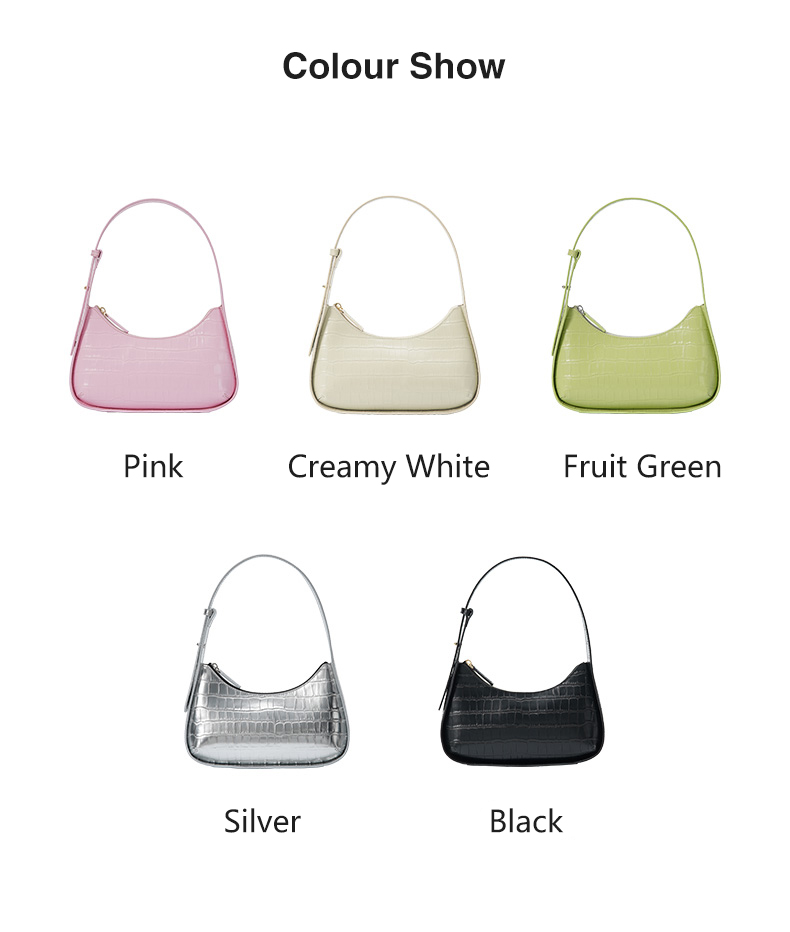 Manufacturer Custom New Fashion Half Moon Crocodile Pattern Genuine Leather Ladies Underarm Shoulder Hand Bag Handbags For Women