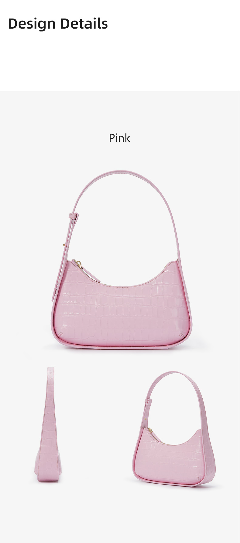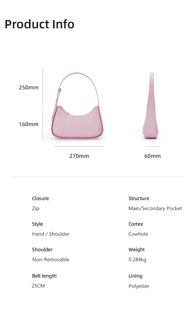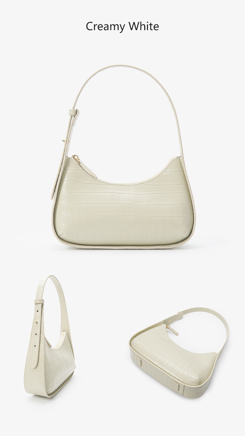 Manufacturer Custom New Fashion Half Moon Crocodile Pattern Genuine Leather Ladies Underarm Shoulder Hand Bag Handbags For Women