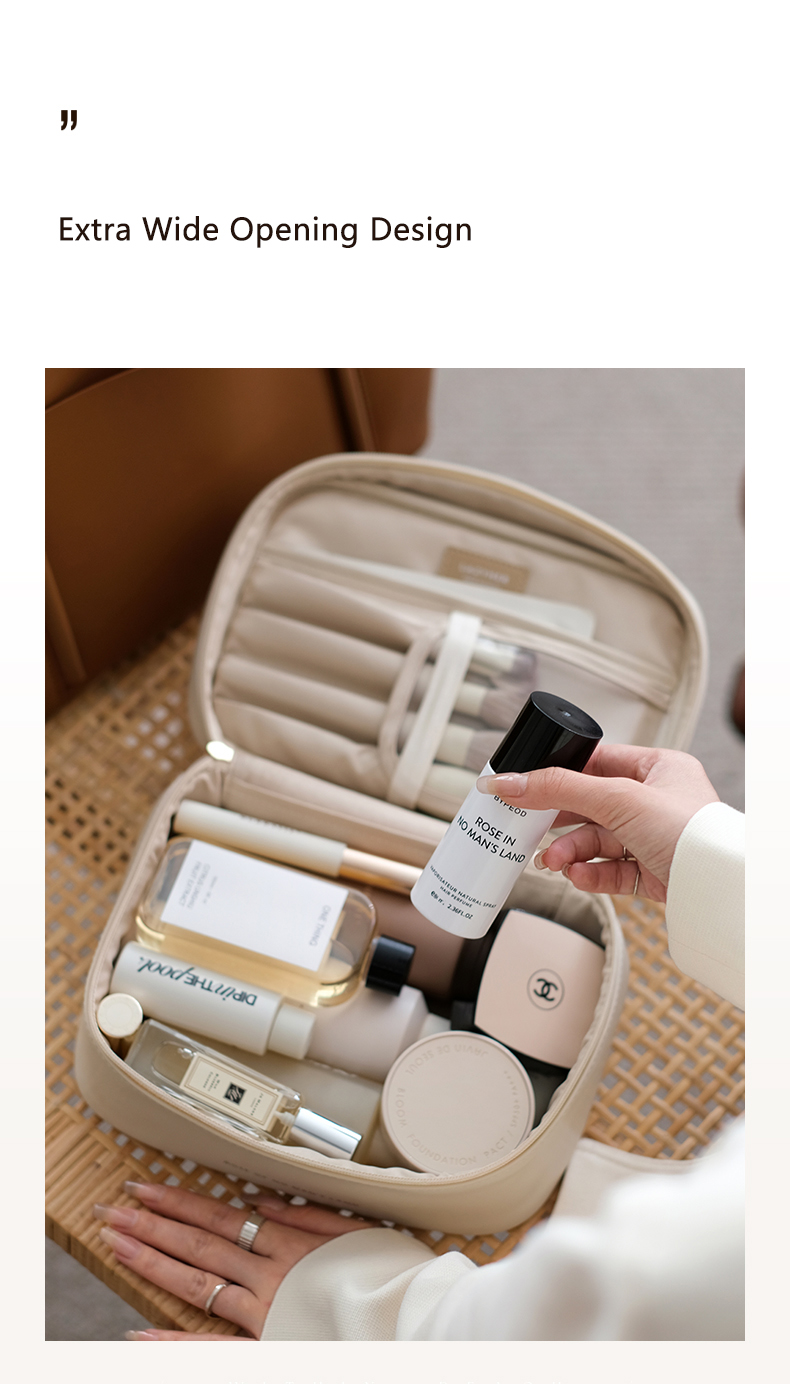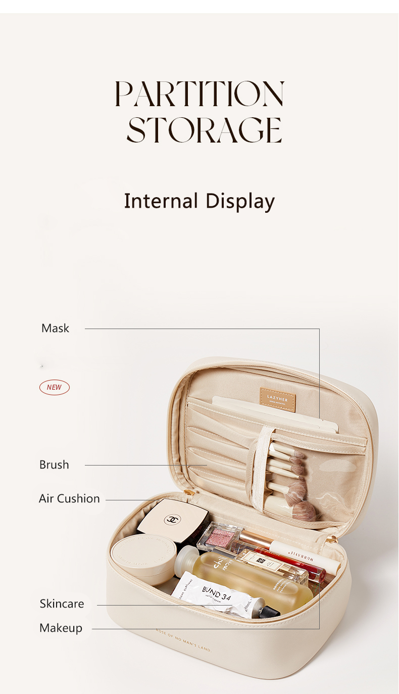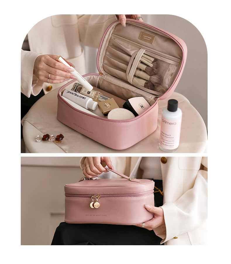 Manufacturer Custom New Large High End Professional Travel Storage Portable Vegan Pu Leather Make Up Makeup Cosmetic Bag