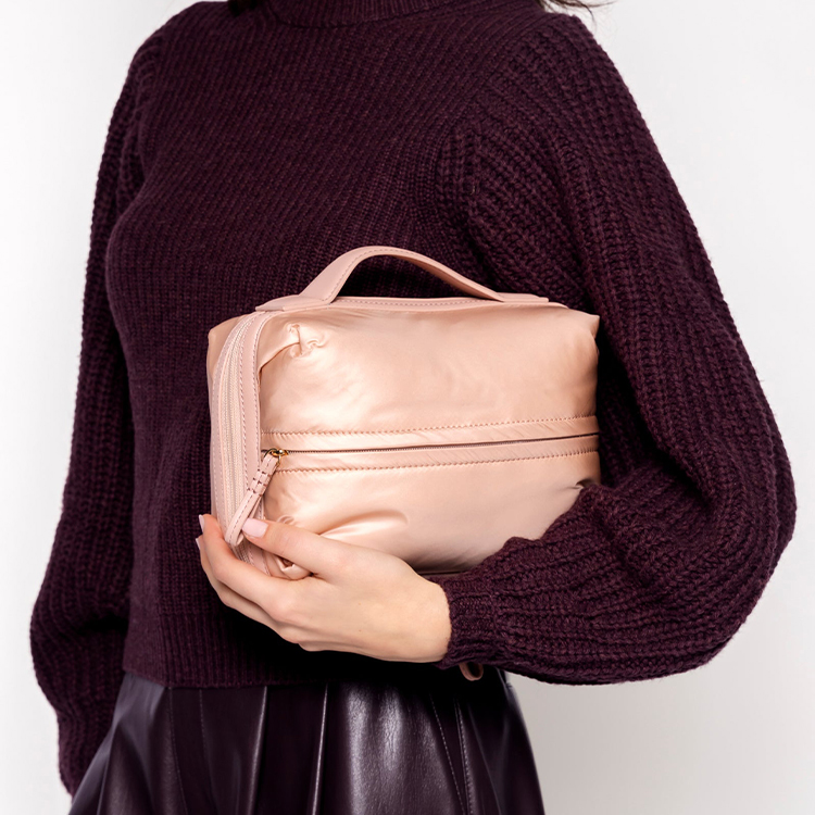 Manufacturer Custom With Logo Vegan Eco Friendly 100% Recycled Nylon Puffy Puffer Travel Make Up Makeup Cosmetic Bag For Women