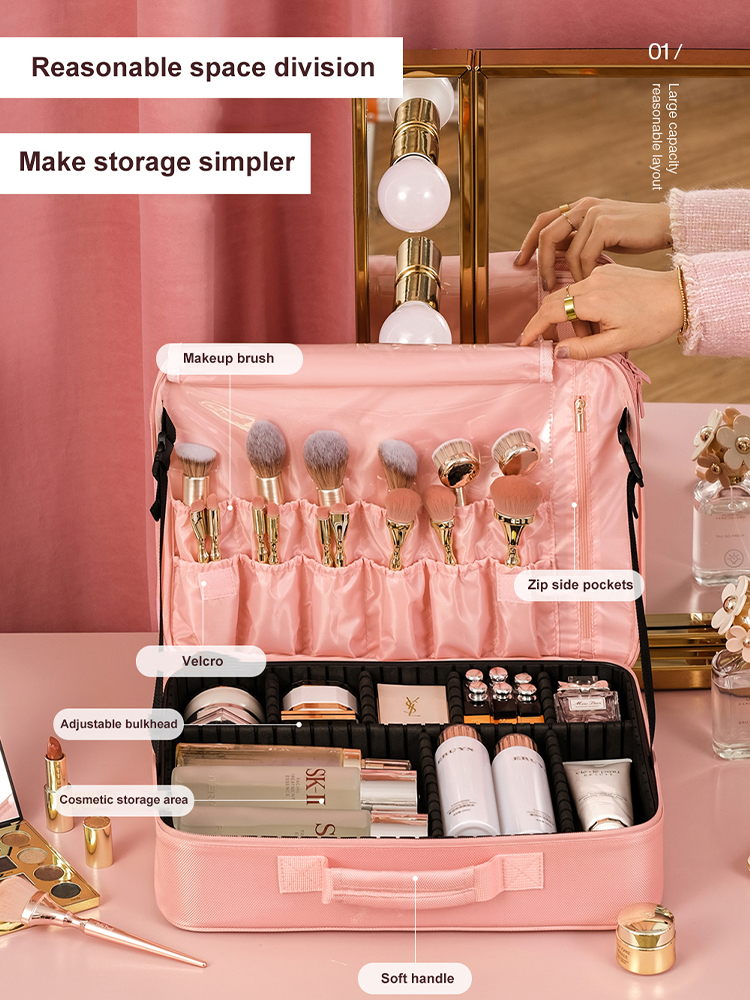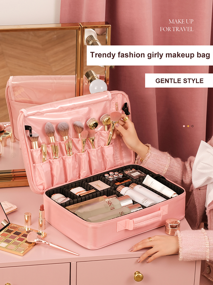 Manufacturer Custom Luxury Waterproof Oxford Cloth Hard Trolley Travel Makeup Case Cosmetic Bag With Compartment