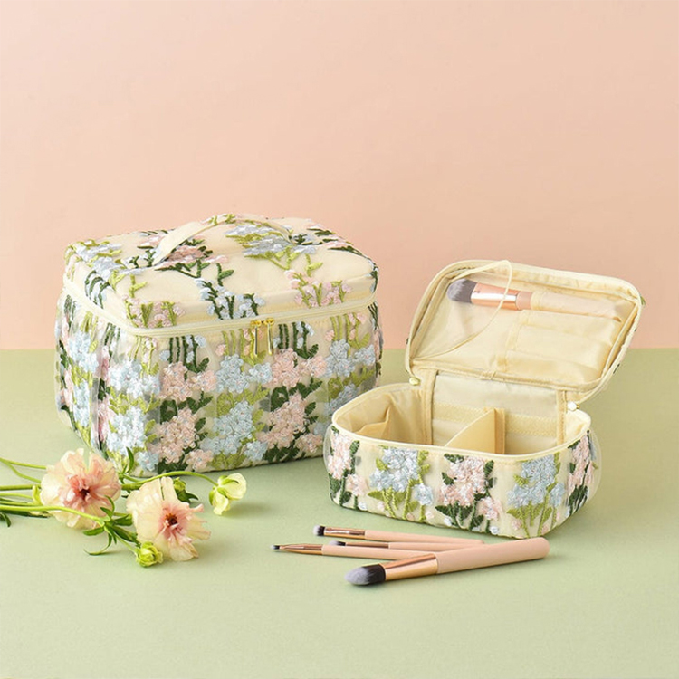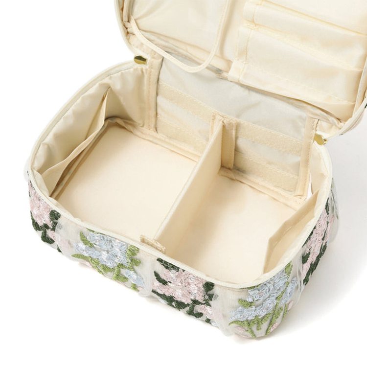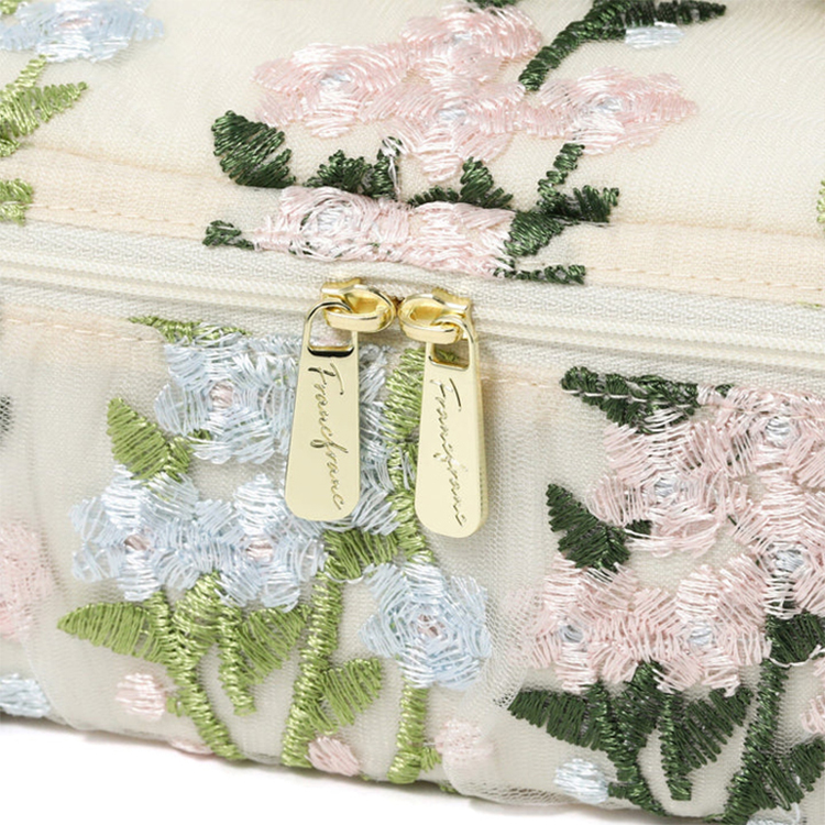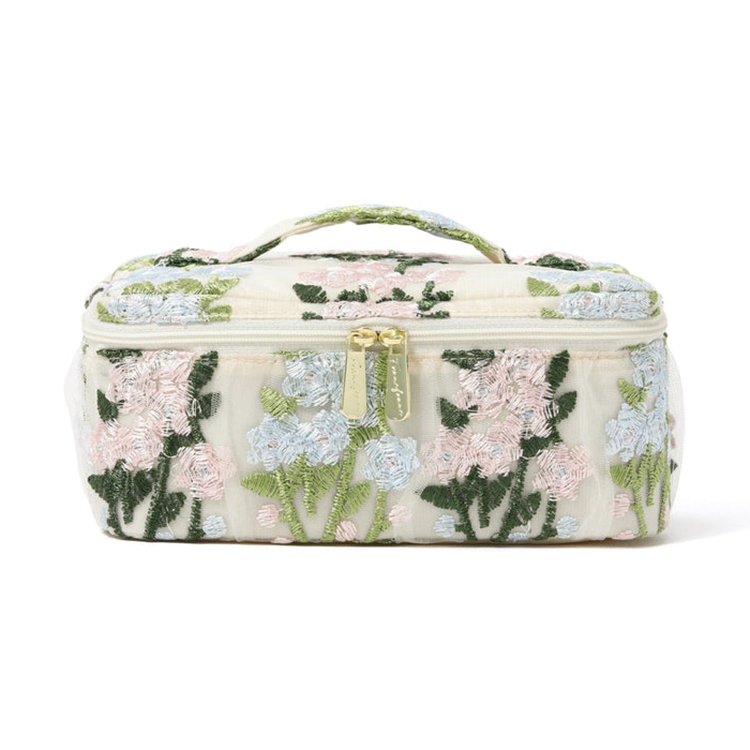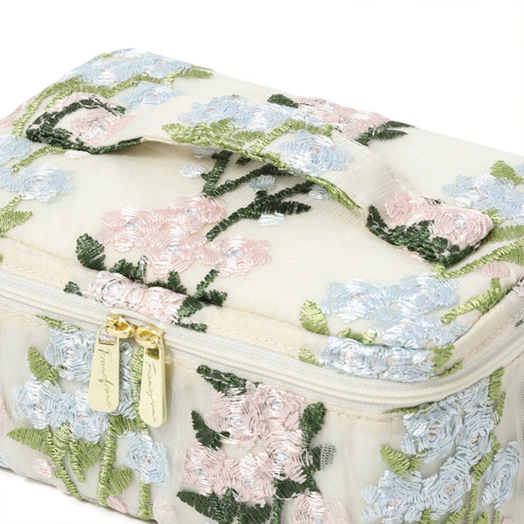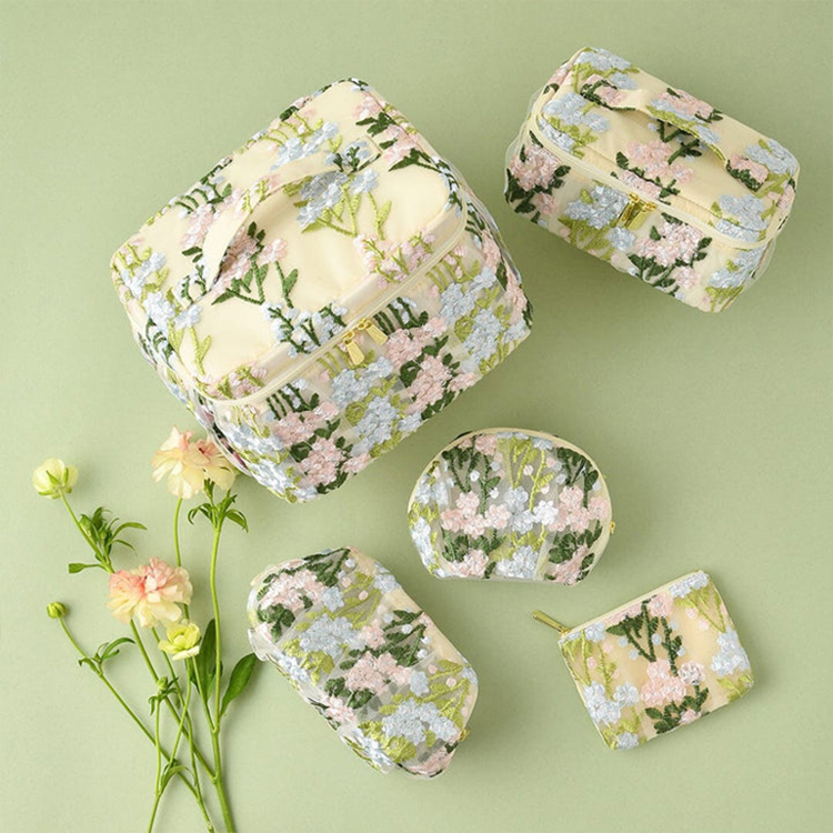 Manufacturer Custom Logo 2024 Designer Luxury Tulle Print Floral Embroidered Vanity Make Up Makeup Pouch Cosmetic Bag For Women