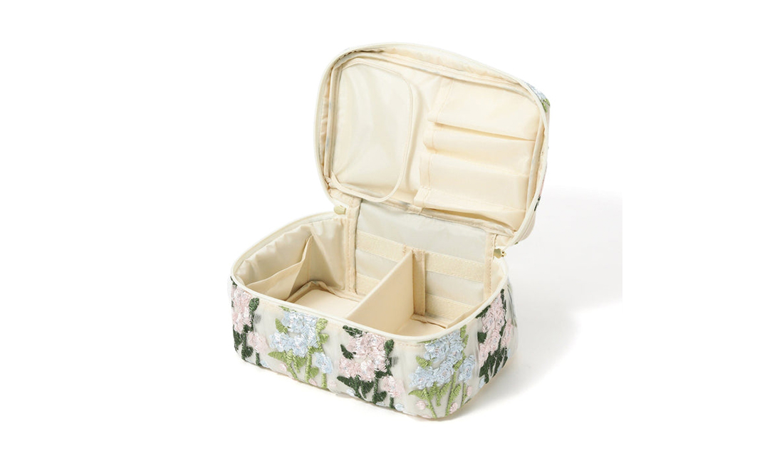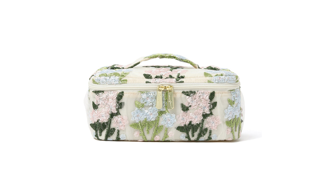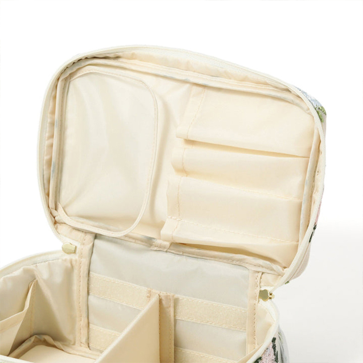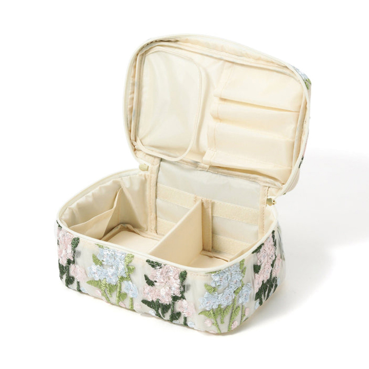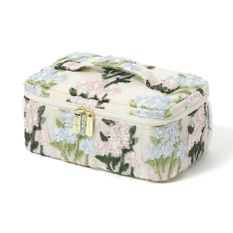 Manufacturer Custom Logo 2024 Designer Luxury Tulle Print Floral Embroidered Vanity Make Up Makeup Pouch Cosmetic Bag For Women