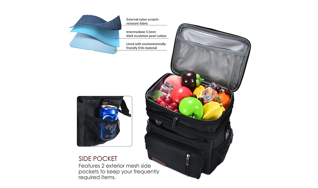 Manufacturers Custom Logo Soft Large Double Decker Box Insulated Lunch Cooler Bag For Men Women Adult Work Office Picnic Beach
