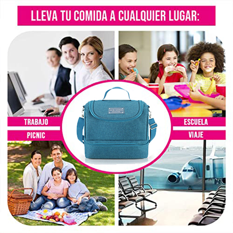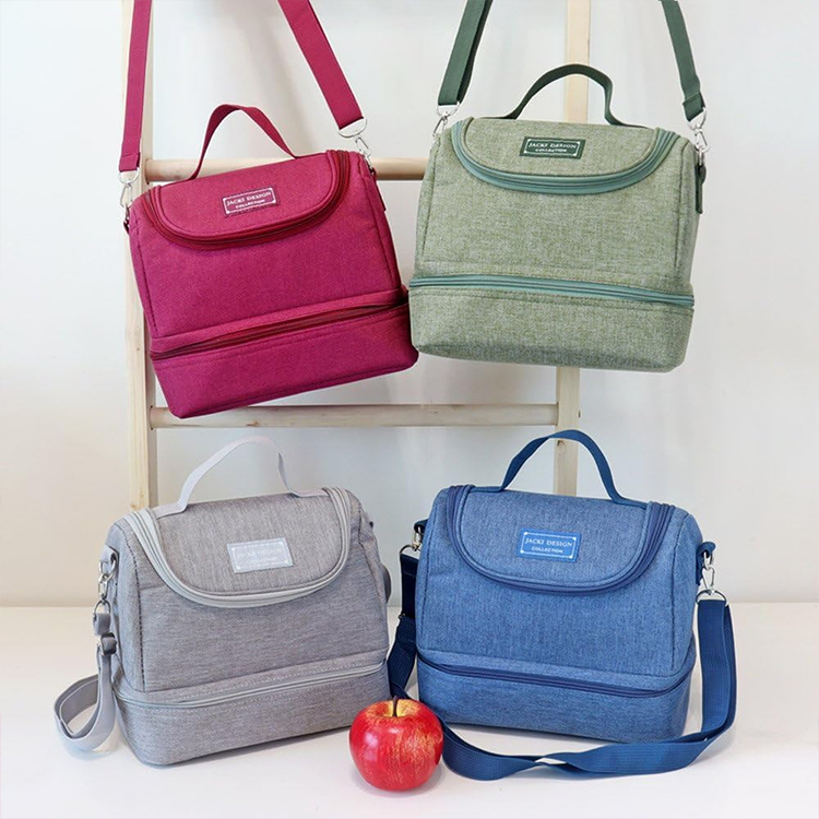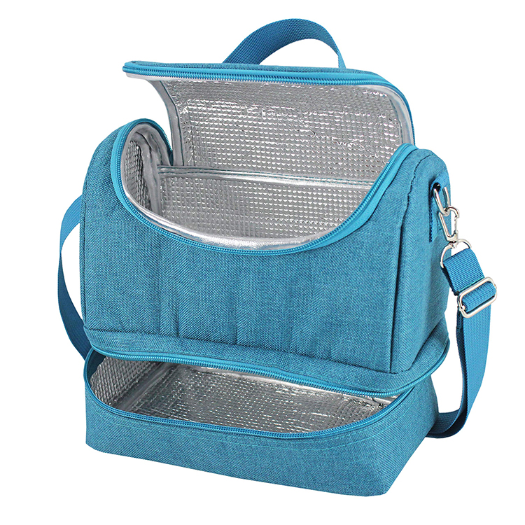 Manufacturer Custom With Logo Reusable Portable Double Decker Thermal Cooler Insulated Lunch Box Tote Bag For Adults Men Women