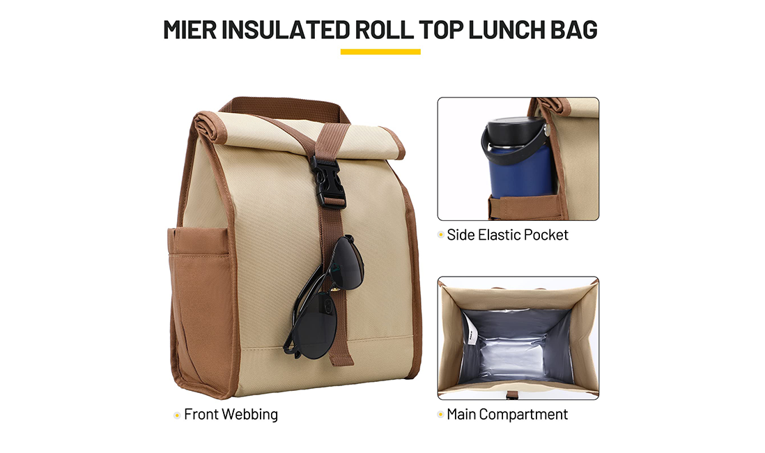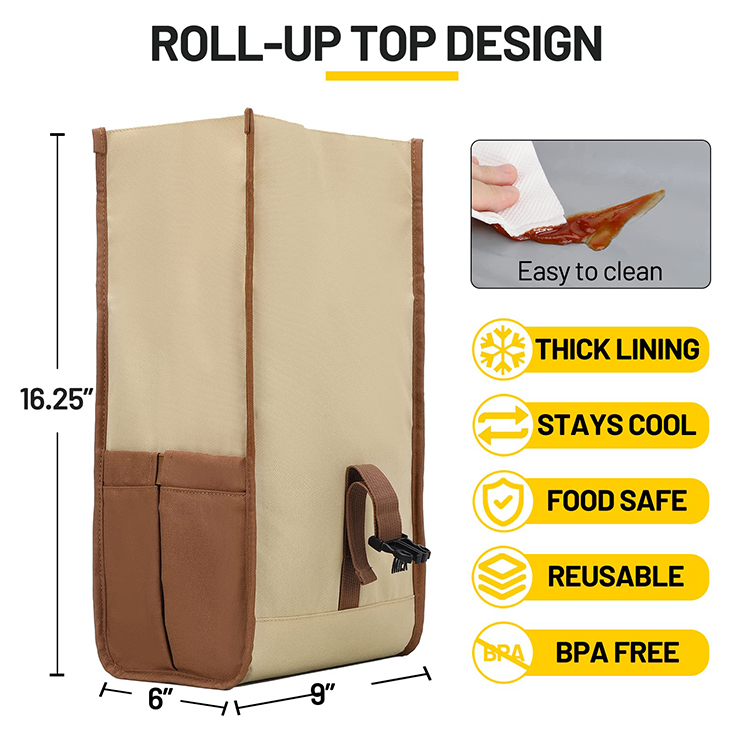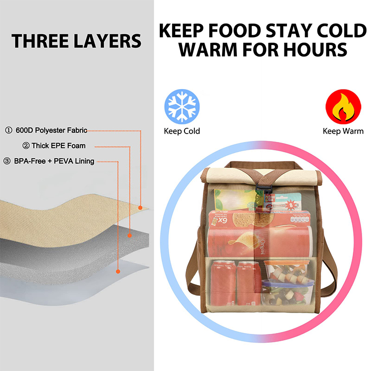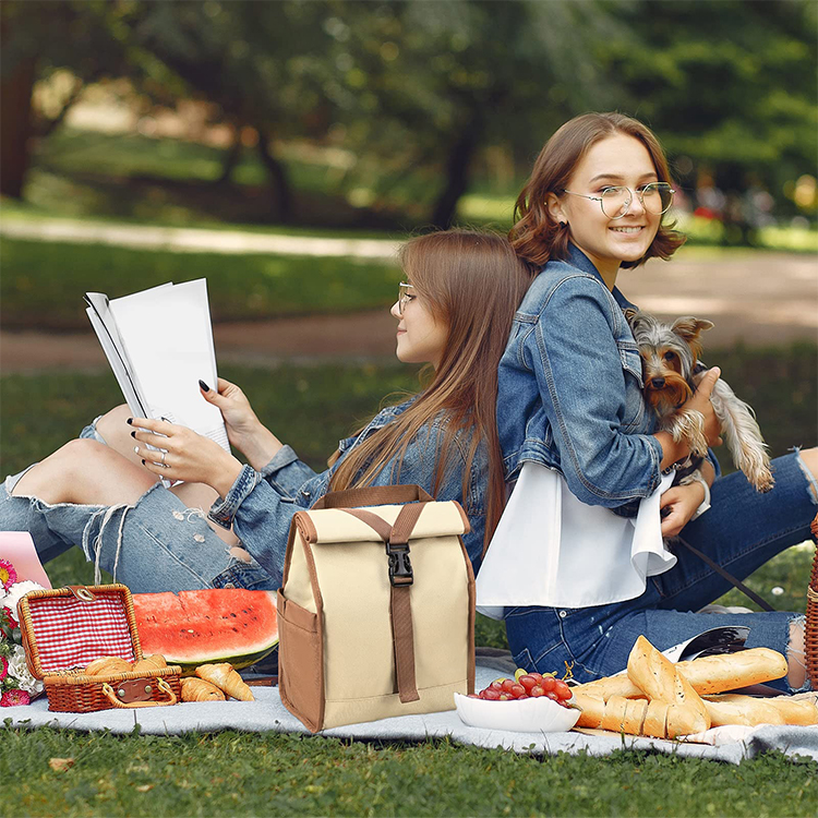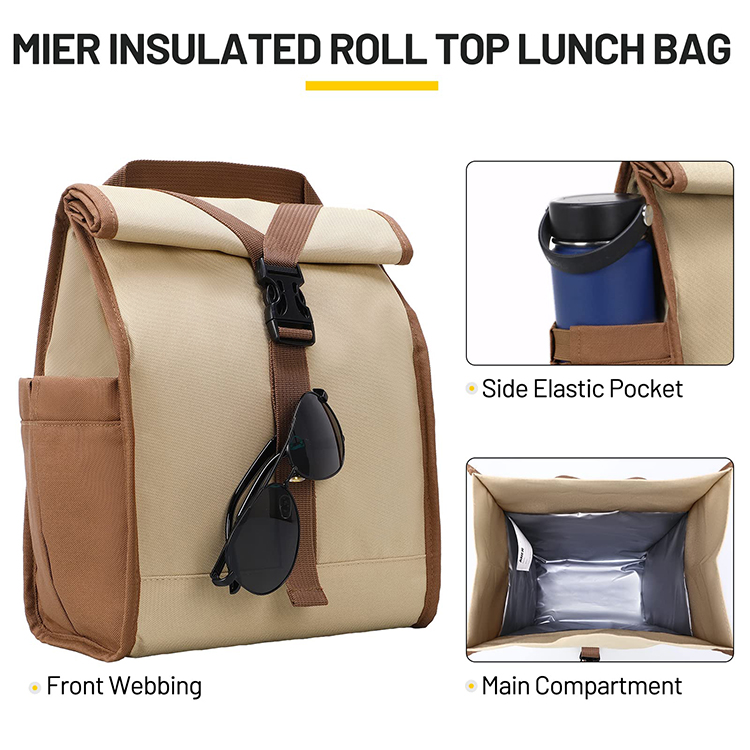 Manufacturer Custom Logo Soft Reusable Leakproof Foldable Roll Top Insulated Cooler Lunch Bag For Adult Men Women Work Office