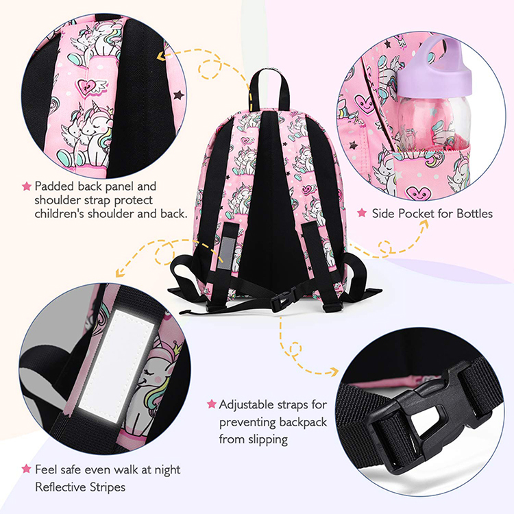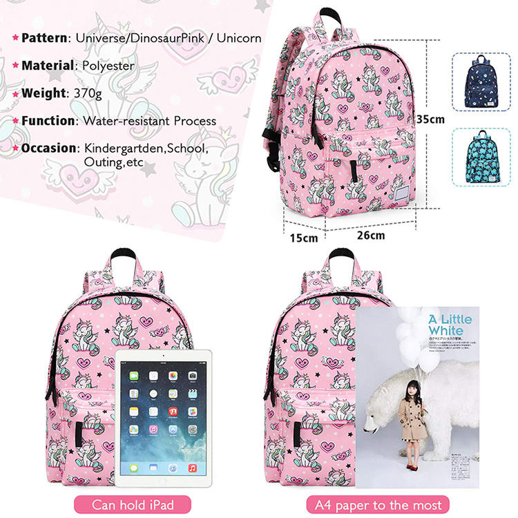 Manufacturer Custom Cute Floral Cartoon Printed Pattern Unicorn Waterproof For Kids Girl Kindergarten Pre School Bag Backpack