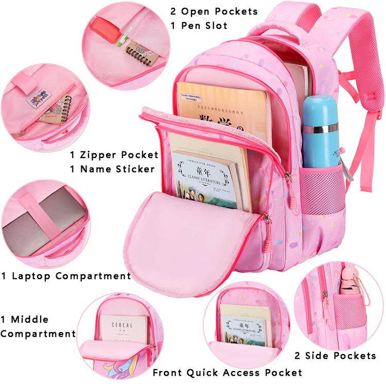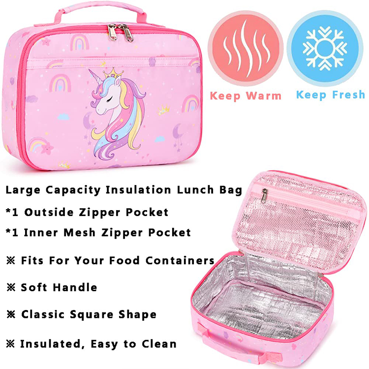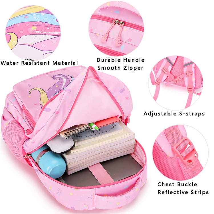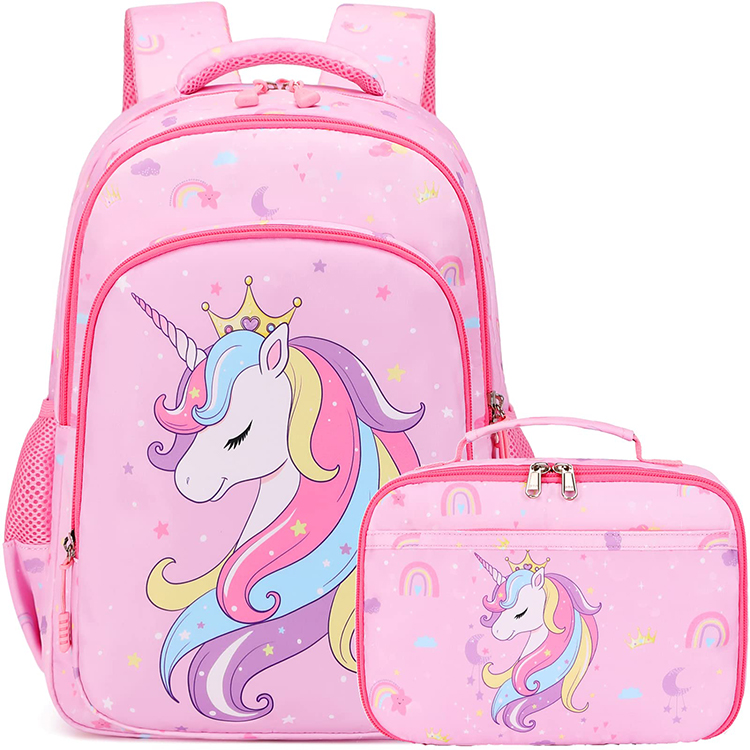 Manufacturer Custom New Cartoon Unicorn Waterproof Teenagers Children School Bag With Lunch Bag Set Backpack For Boys Girls