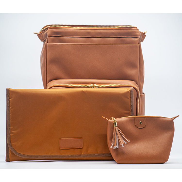 Manufacturer Custom Logo Stylish Designer Luxury Unique Vegan Pu Leather Mommy Baby Diaper Bag Backpack With Changing Mat