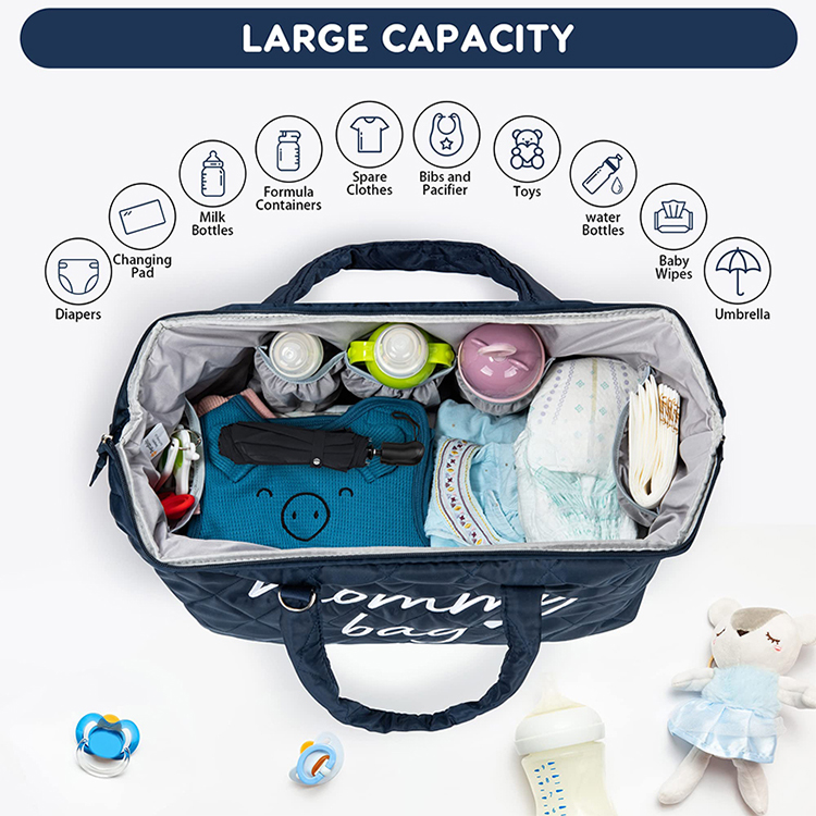 Manufacturer Custom Luxury Cotton Canvas Travel Organizer Pouch Set Clutch Small Mommy Baby Shoulder Crossbody Tote Diaper Bag